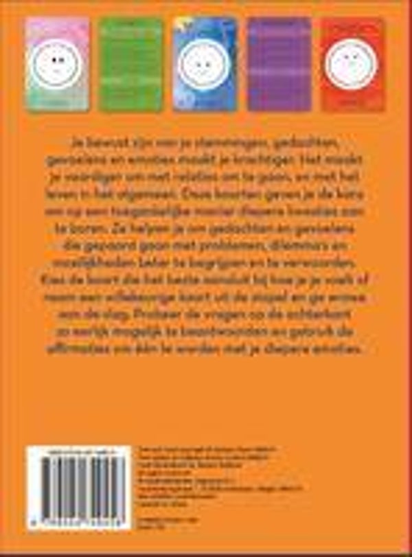 Je bewust zijn van je stemmingen, gedachten, gevoelens en emoties maakt je krachtiger. Het maakt je vaardiger om met relaties om te gaan, en met het leven in het algemeen. Deze kaarten geven je de kans om op een toegankelijke manier diepere kwesties aan te boren. Ze helpen je om gedachten en gevoelens die gepaard gaan met problemen, dillema's en moeilijkheden beter te begrijpen en te verwoorden. Kies de kaart die het beste aansluit bij hoe je je voelt of neem een willekeurige kaart uit de stapel en ga ermee aan de slag. Probeer de vragen op de achterkant zo eerlijk mogelijk te beantwoorden en gebruik de affirmaties om één te worden met je diepere emoties.