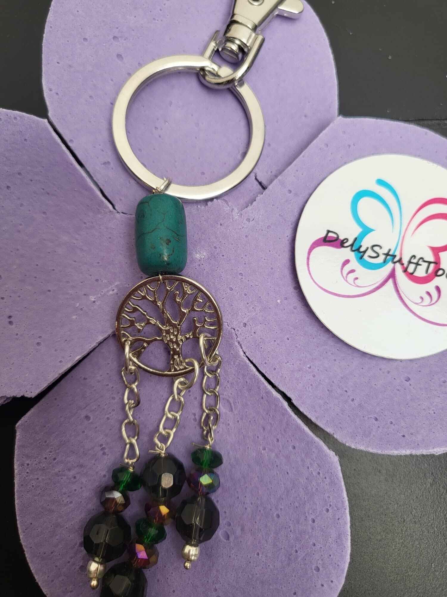 Sleutelhanger met het Tree of Life symbool en turquoise kraal.