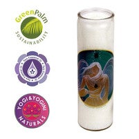 Witte stearine geurkaars in glas met een afbeelding van een genezende engel.