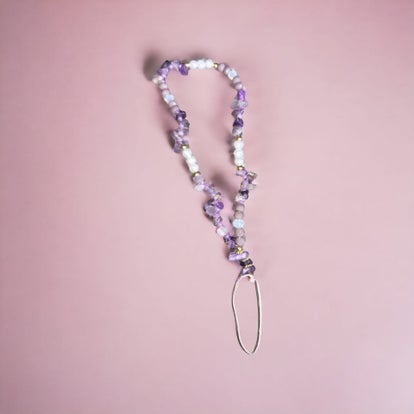 Telefoonketting met amethist 19 cm. Geleverd in cadeau zakje.