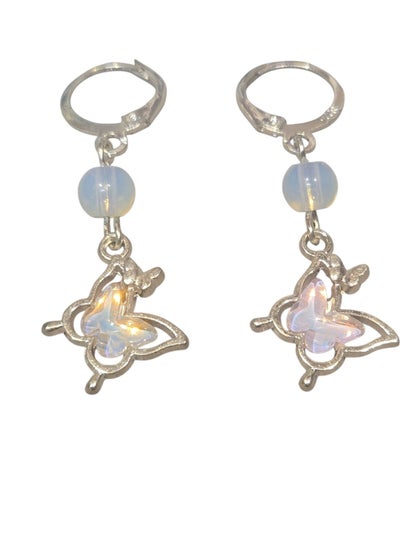 Elegante oorbellen van labradoriet en witte agaat, met ohm.*